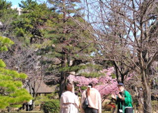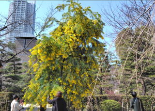 2026年3月5日~3月19日「春分」(春分)冬の厳しい寒さの中で静かに過ごしていた自然が、少しずつ動き始める頃です。土の中で冬ごもりしていた虫たちが姿を現す季節とされます。天気や空気の変化もはっきりと感じられる時期。寒暖差が大きくなり、花粉の飛散が本格化し、低気圧の通過によって荒れ模様になり、天気の変化が大きくなる時期でもあります。移動性高気圧と低気圧が日本付近を交互に通過し、暖かな日と寒さが戻る日を繰り返す「三寒四温」の傾向がよく現れてきます。雨上がりの翌日の晴れの日は、特に花粉が多く拡散され、晴れていても洗濯物を室内干しにされるそうです。ともあれ、ここ縮景園にも春到来の兆しがみえます。梅林の梅もその役割を終えた模様です。初夏にまた子供たちが梅の実取りに訪れます。今の主役は、何といっても冠木門を入り右に、先ず、鮮やかな黄色の「ミモザ」、そして、広場奥、濯纓池側に、早咲き桜の「河津桜」の一本とが饗宴、これも鮮やかなピンク色に咲き誇り、多くのお客様を引き付けております。ミモザは、ヨーロッパでは春を到来を告げる花のようです。観るなら今のうちに!