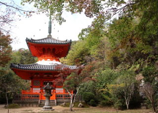 秋はもみじ三滝に行くには、JRもありますが、市内から「広島バス」22号線もあります。バスの終点から少しばかりあるくと参道入り口ですので便利ですが、1時間に1本くらいしか便がないので予め行きかえりの時刻を調べておく必要があります。秋と言っても都会の9月は何処にいても厳しい残暑が続きますが、三滝の「深山幽谷」ではいち早く秋の到来を感じられます。11月半ばには朝晩ではだいぶ冷え込むようになります。参道にある紅葉もだいぶ進んできます。三瀧寺入口を入ってすぐ右の「多宝塔」の境内の紅葉が、多宝塔の朱塗りとあいまって一層美しように思われます。