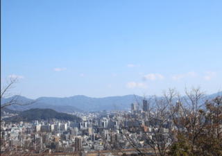 三段の僅かな場所ですが眼下に広島の街並みが望めます。あれが比治山、、、