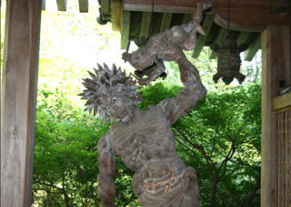 怒気いっぱいの金剛力士像、不動明王に頭を握られた邪鬼
