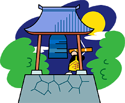 赤縄橋を通り石段を上がると鐘楼あり、静かにお祈りしながら鐘をひとつつく
