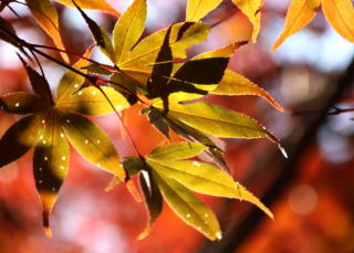 2025年11月22日~12月6日「小雪」(しょうせつ)「11月22日から二十四節気の「小雪」に入りました。立冬を過ぎて寒くなり、雨 がそろそろ雪(又はみぞれ)に変わり始める季節という意味です。雪といえば初雪が 気になりますが、初雪は広島市中区で観測して、初冠雪はその年の夏が終わった後に 、初めて山頂に雪で白く見えるときです。その場所は広島では気象台から西北10km のところにある極楽寺山(標高693m)の山頂付近を観測対象にしているとのことで す。極楽寺山は広島市内近郊では雪が一番に降りやすところだからそうです。このと ころ、気温が下がり、広島市内と近郊の紅葉が見ごろとなってきました。先日の16 日に、広島中心部から西北約3Km余りにある「三瀧寺」の紅葉を見に行きました。 もみじの紅葉が「深山幽谷」の中、こぼれる太陽の光に赤く染まり見栄えておりまし た。この日は毎年秋の日曜日に開催される、年に一度のもみじ祭り日、「多宝搭」が 開帳され「阿弥陀如来さま」を拝むことができました。塔内の壁面には、「釈迦誕生 図」等、9つの壁画が描かれており、いずれにも感嘆するものばかりでした。外国か らのツアー客も多く、一昔前の「みたきのかんのんさん」と、市民から親しまれた頃 とはいくぶん観光化されたようです。ともあれ、酷暑だったあの夏の日も、今は面影 もなく、今年もあと一か月あまり。今日も「小春日和」でした。とても短いと思われ ますこの秋を大急ぎでお楽しみください。