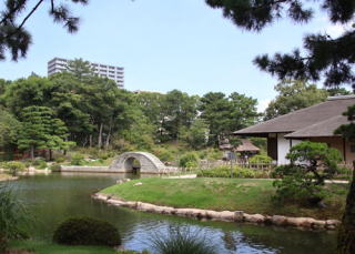 縮景園へ移動 広島の城郭は約1km四方の広大な平地でしたが、軍都化により堀を含めてそのほとんどが埋め立てられ取り壊された