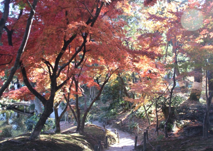 池泉回遊式庭園...【桜花巷(おうかこう)】縮景園仮名記「まず清風の右に桜花巷がある。若木の桜を数をつくして植え、あれやこれや立ち並んでいる。花のさかりの頃にはまるで白雲をつらぬいて通うようで、まさに花の道であることだ」